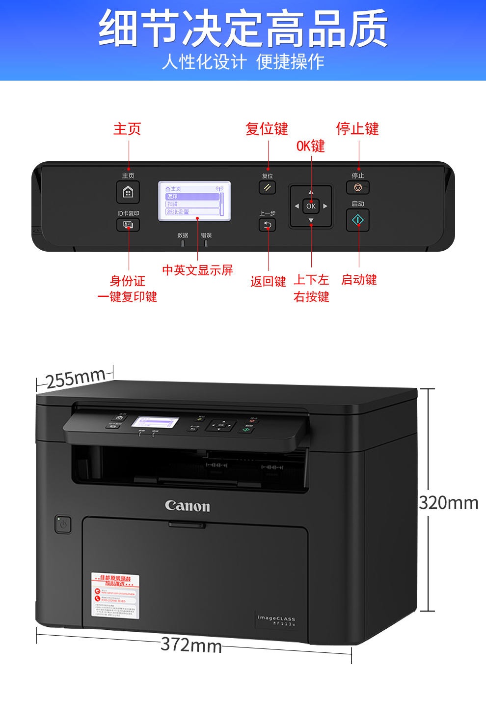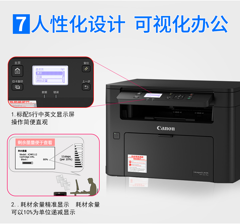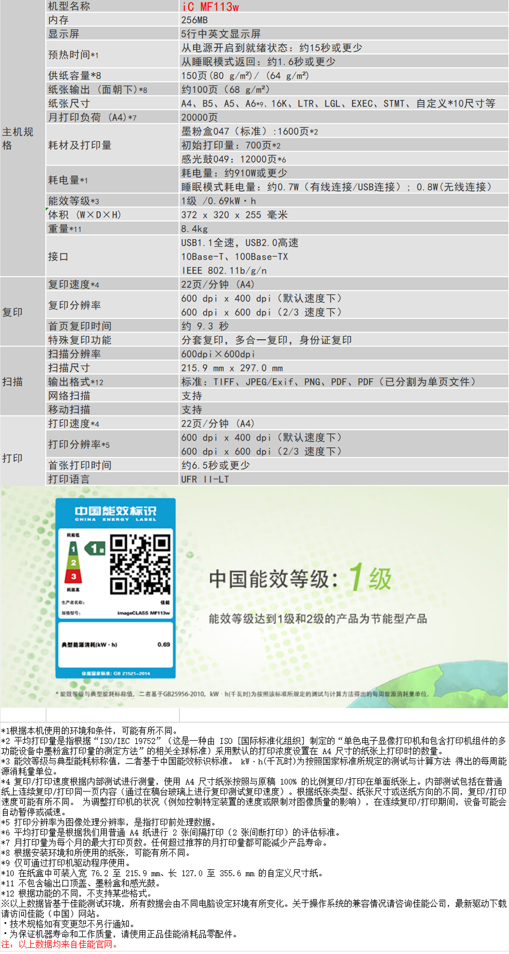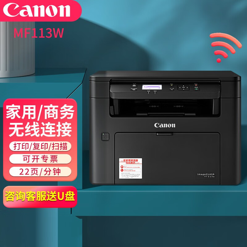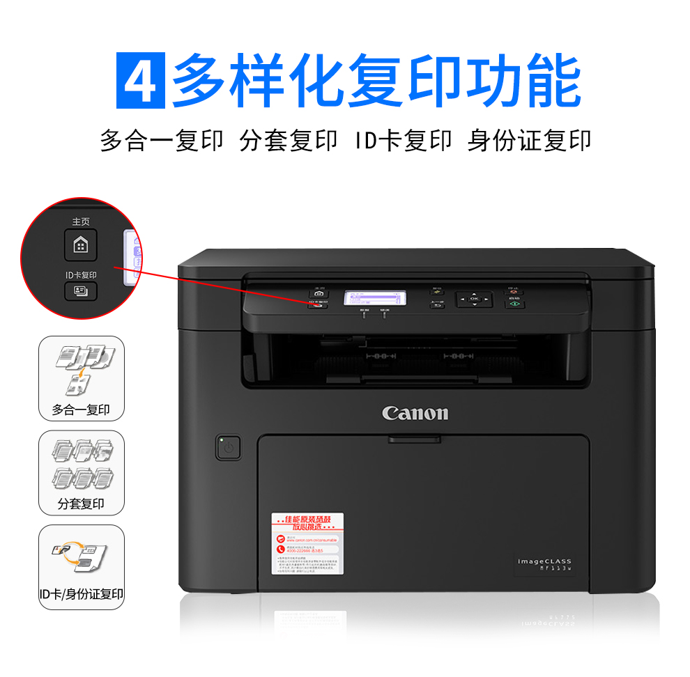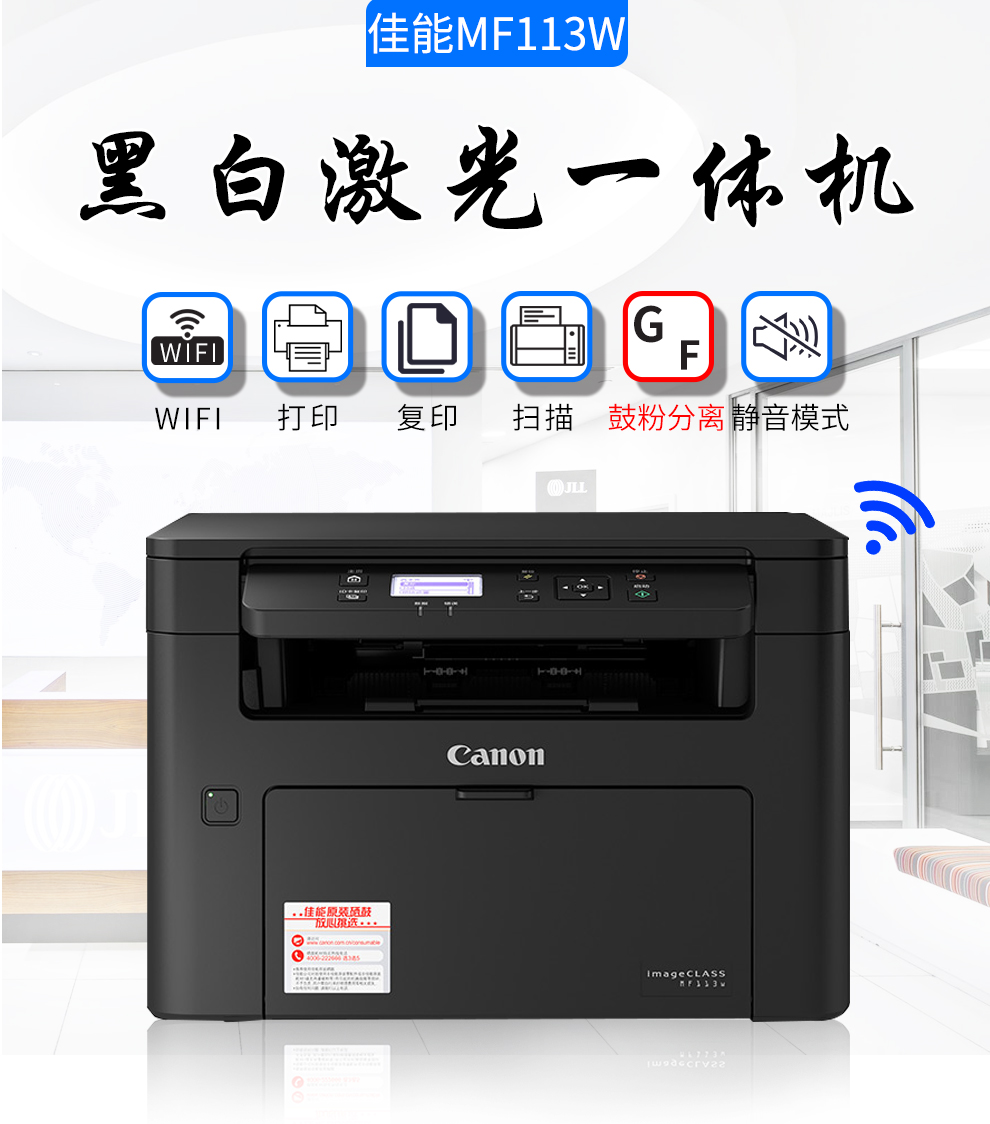 佳能MF113w黑白激光打印机多功能打印复印扫描一体机无线wifi手机打印A4幅面家用办公小型商用 MF113w标配:不可加粉(无线WiFi) 自营