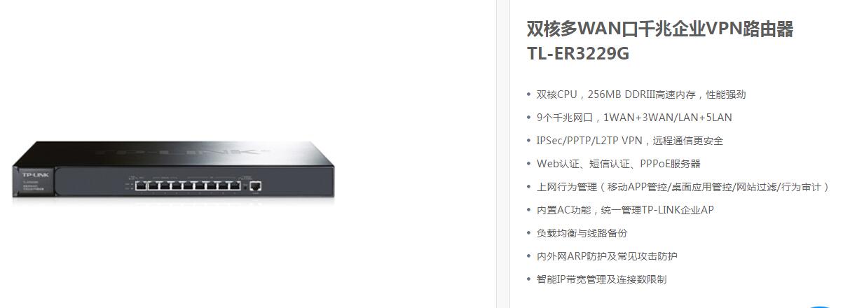 普联 TP-LINK 双核多WAN口千兆企业VPN路由器 金属机身强散热 TL-ER3229G 自营