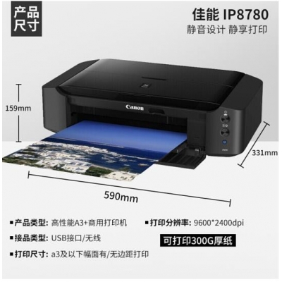 佳能ix6780/6880/ip8780彩色A3喷墨专业照片打印机商用办公不干胶皮纹纸铜版纸wifi 无线版IP8780官方标配【六色独立墨盒】 自营