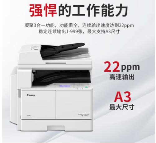 佳能(Canon)大型打印机iR2206AD 商用办公a3a4黑白复合复印机含输稿器(打印/复印/扫描/WiFi)上门服务 自营