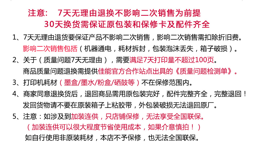 温馨提示 本商品无质量问题不支持退换货