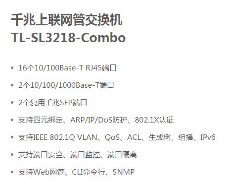 TP-LINK TL-SL3218-Combo 16口百兆二层网管核心交换机 2千兆口+2复用千兆光纤口 自营