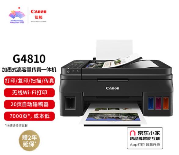 佳能G4080/G7080黑白彩色家用连供打印机一体机复印机墨仓式可加墨水 佳能G4080(黑白无线双面打印复印扫描) 官方标配
